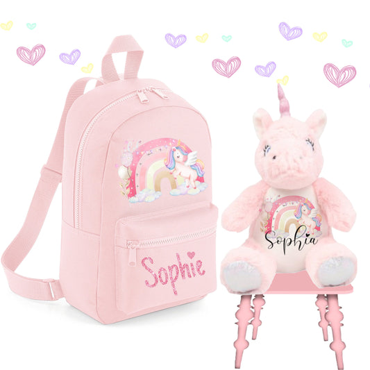 Personalised Rainbow Rabbit Backpack ANY NAME Back To School Bag Backpack Kids Nursery Toddler Rucksack best seller