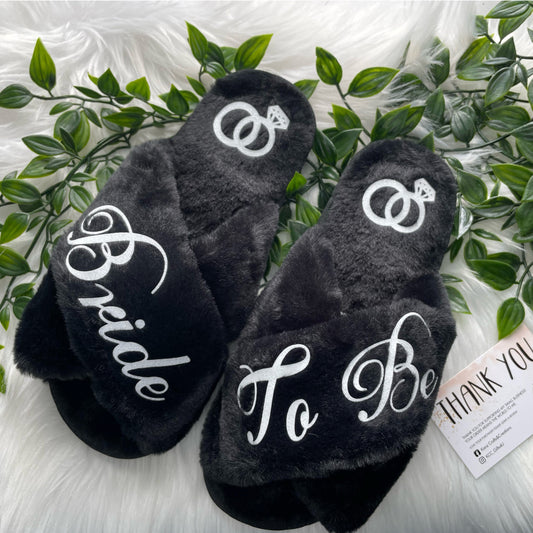 Fluffy cross strap slippers, Bridal Slipper Bridesmaid Gifts Bridal Shower Fluffy Slide On Girls Night Sleepover