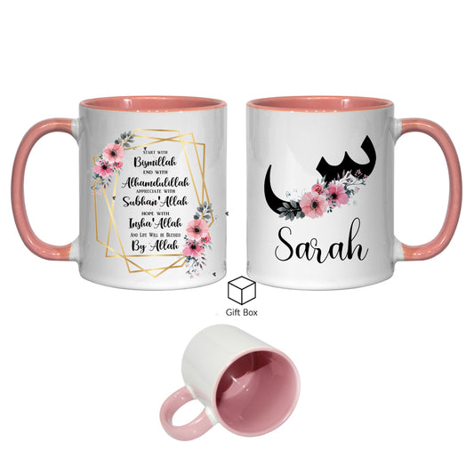 Personalised Arabic Mug with Initial Letter and floral frame ,Start With B